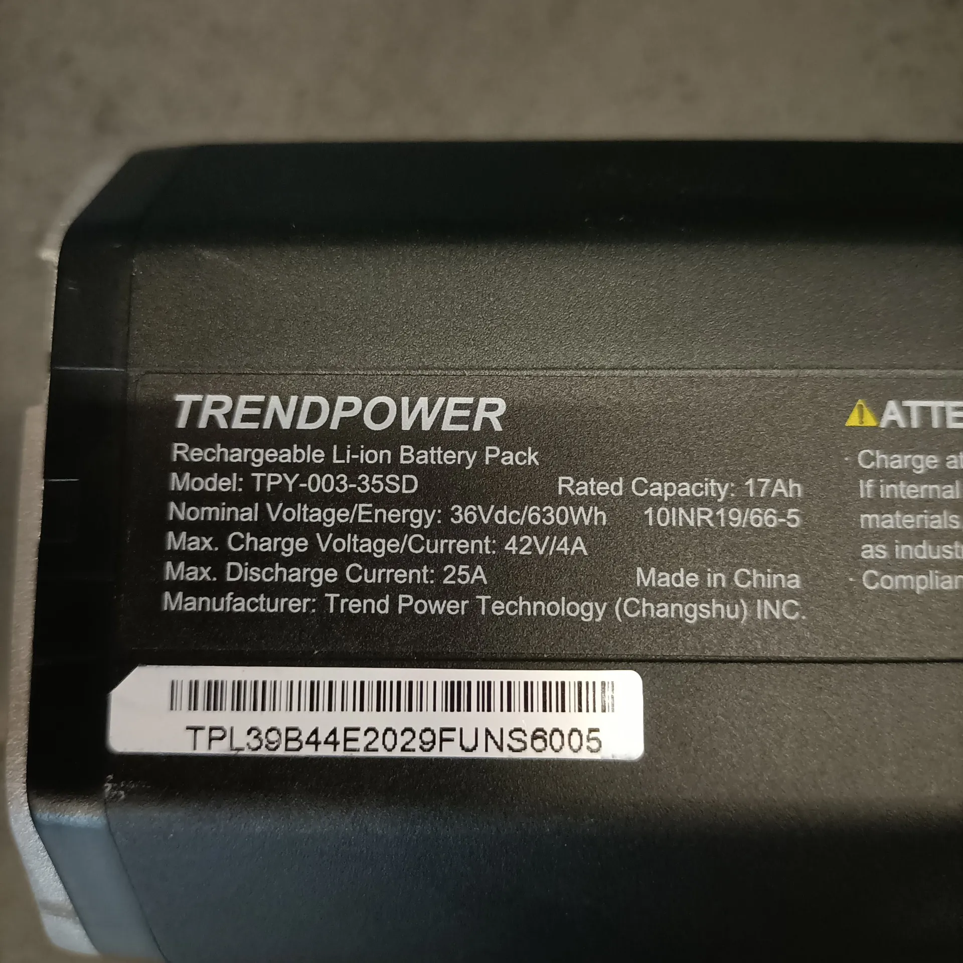 - 630 Wh – 36 V – 17 Ah
